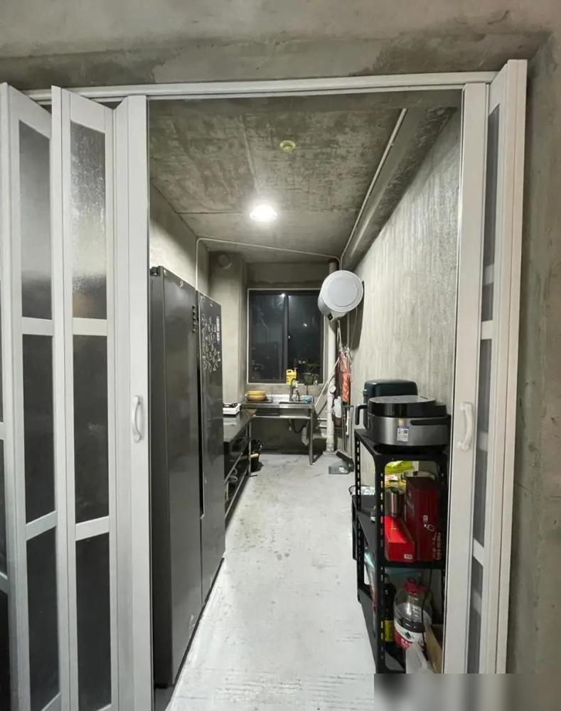 同时,为了提高空间利用率,隔绝油烟影响,避免进驻厨房时产生恶臭以及对精致出餐产生干扰,屋主将原本普通的门换成了折叠门。这样一来,厨房功能仅在工作时使用转化即可自动收纳隐藏,使生活外观更加原始、美观、大方实用。
